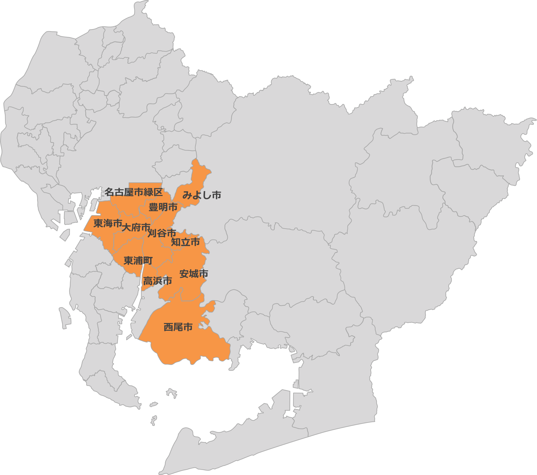 刈谷市 / 西尾市 / 安城市 / 豊明市 / 名古屋市緑区 / 知立市 / 高浜市 / みよし市 / 東浦町 / 大府市 / 東海市