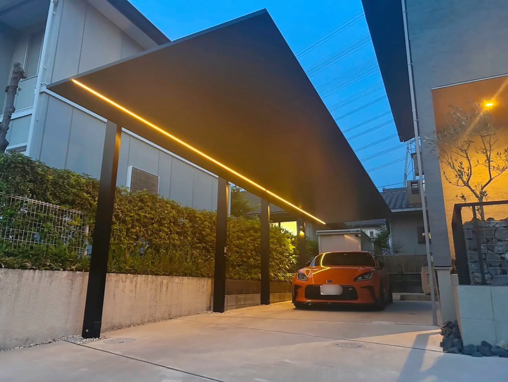 ご家族の駐車スペースにはLIXILのSCカーポートを設置しています。カーポートでもデザイン性が高いので他の外空間との調和も図れているのではないでしょうか。