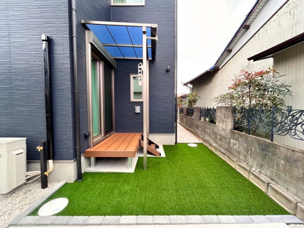 お施主様が建物のアクセント外壁の見た目を大事にされていましたので、木調の外壁前はあえてシンプルにしました。
