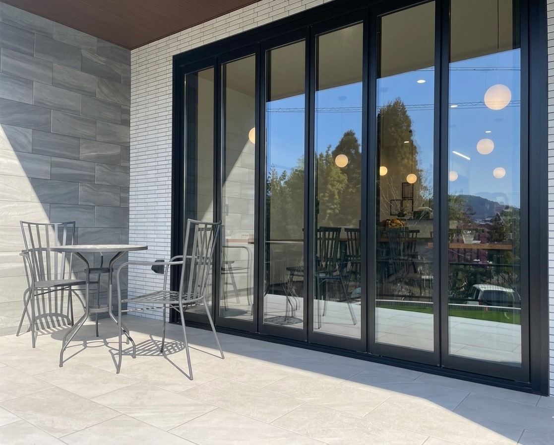 カフェは階段だけでなく、スロープも作り、なるべくバリアフリーを目指せるような仕様となっています。なので店舗入り口やタイルテラスは段差が一切ないフラットな仕上がりになっています。