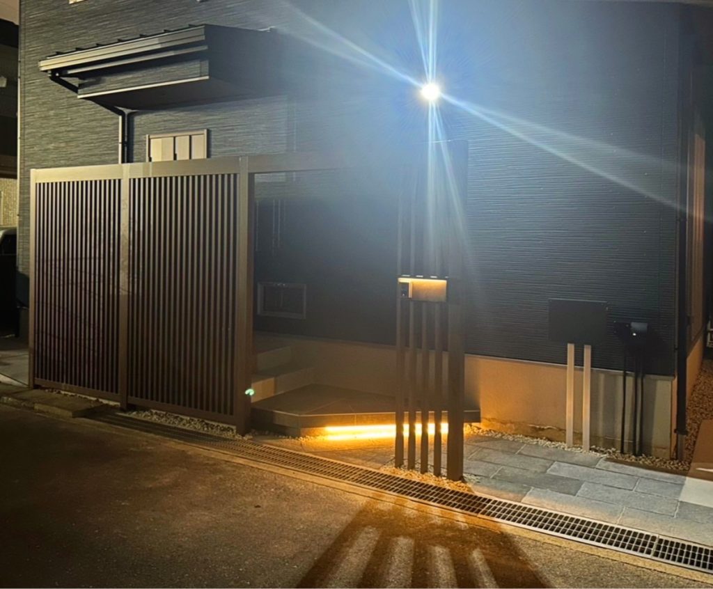蹴込み照明は夜帯のご家族の帰宅時でしたり、ご近所さんや通行者が目を引くアクセントになっています!