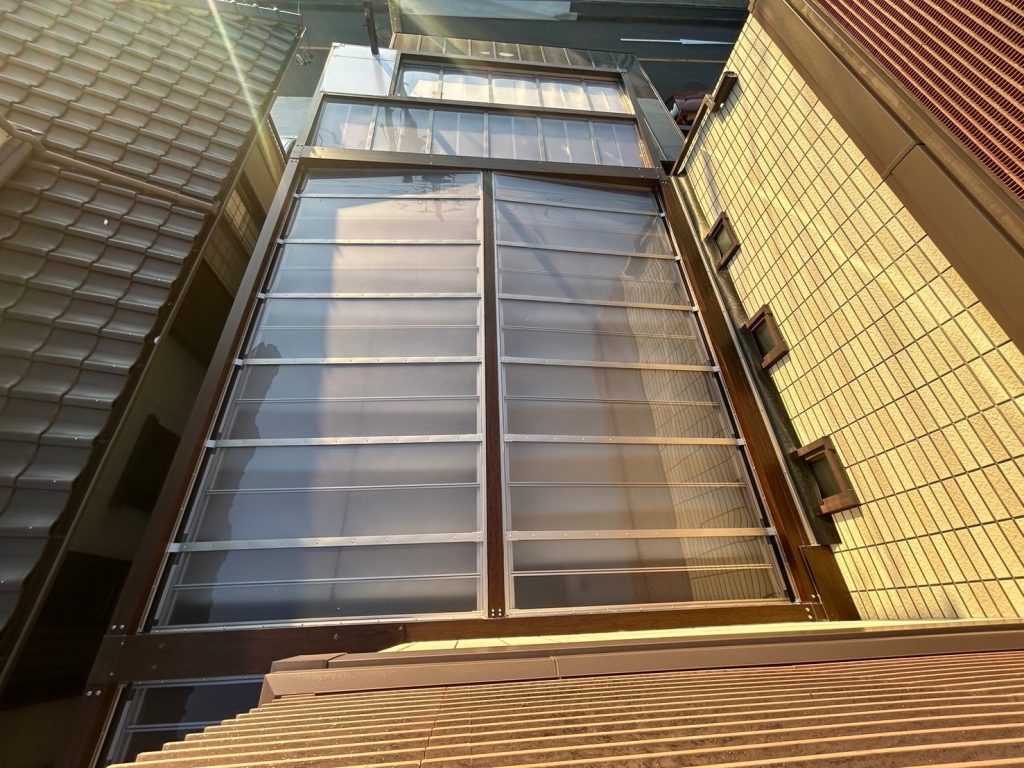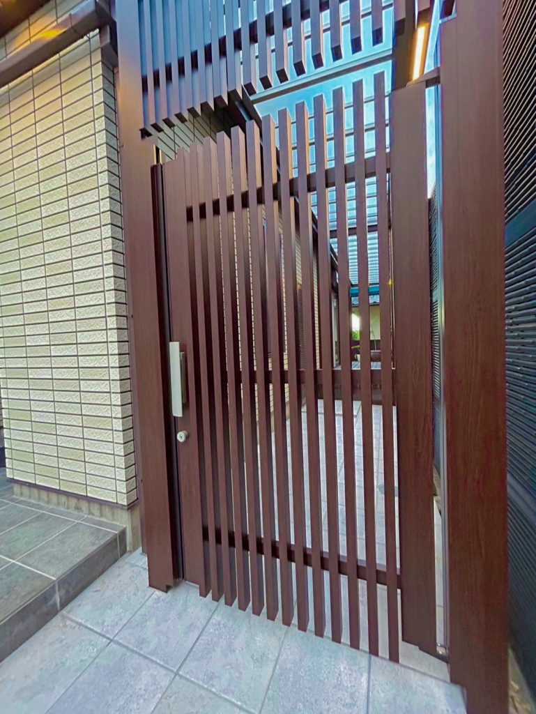 通路は縦格子の扉で閉じて、お庭空間を間仕切っています。