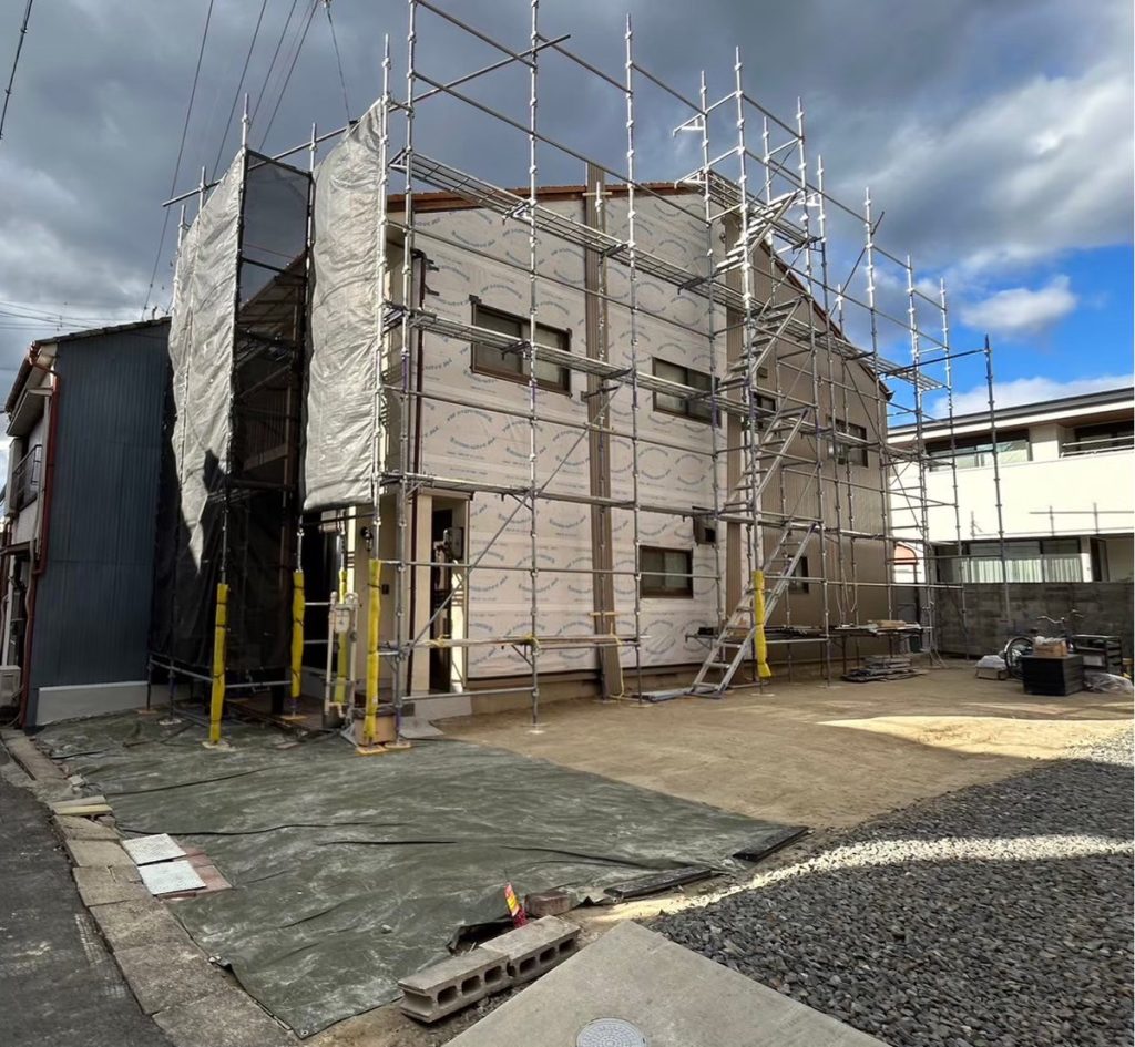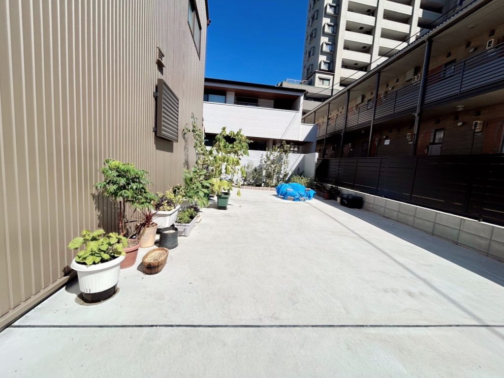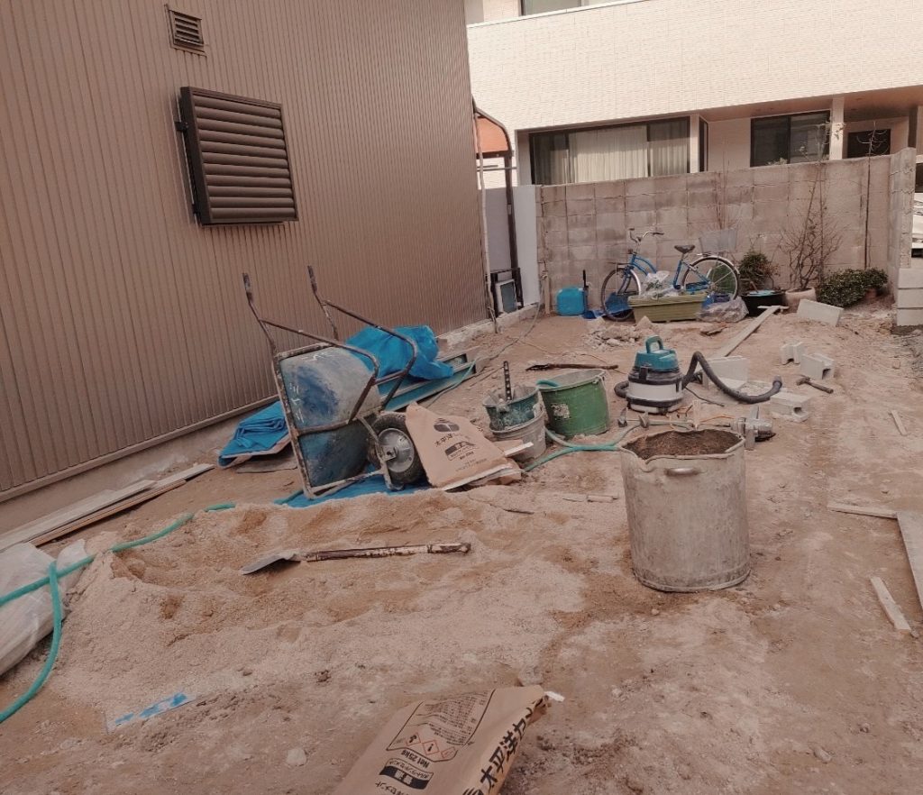 建物の一部を壊して外壁を張り替え後に、外の空いたスペースに広々とした駐車場兼お庭をリフォームで作られたお客様のお宅。