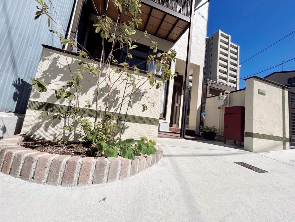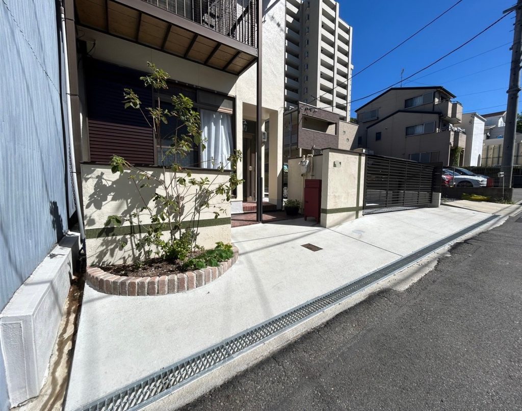 名古屋市緑区ですと、人口も多く自然豊かな場所ではないため、植物と触れ合える空間が欲しいとのご要望により、花壇帯も門壁の前と駐車場の奥の2か所に作り、自然も感じられてやわらかい印象の空間となっております。