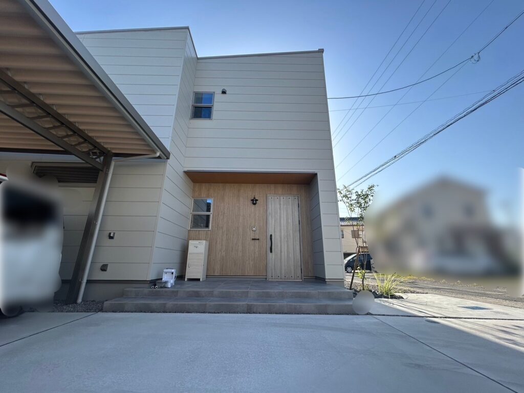 お施主様が建物のアクセント外壁の見た目を大事にされていましたので、木調の外壁前はあえてシンプルにしました♪