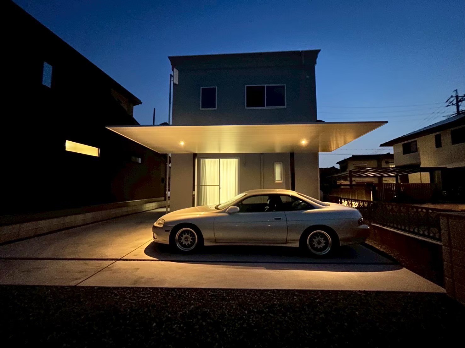 カーポートSCにはダウンライトも付けたので、夜でも愛車が照らし出されます。