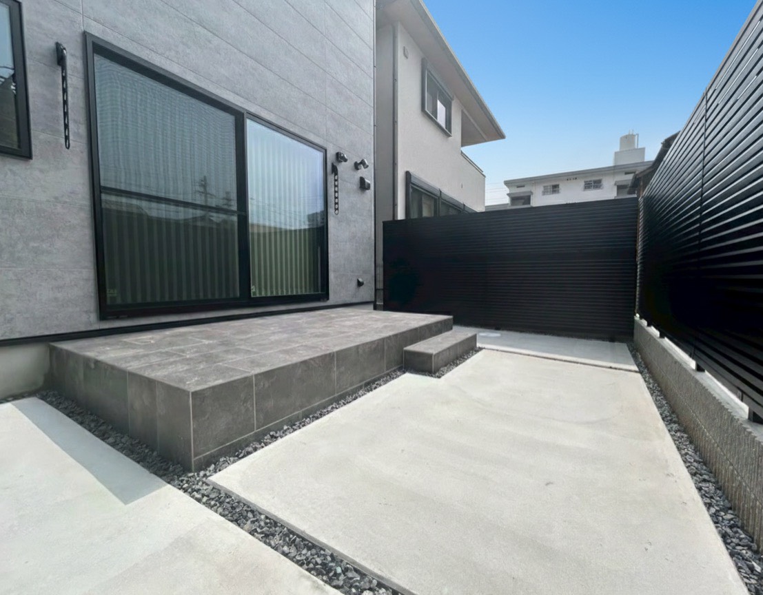 タイルデッキ以外はコンクリートを敷き詰めて雑草対策もばっちりです。