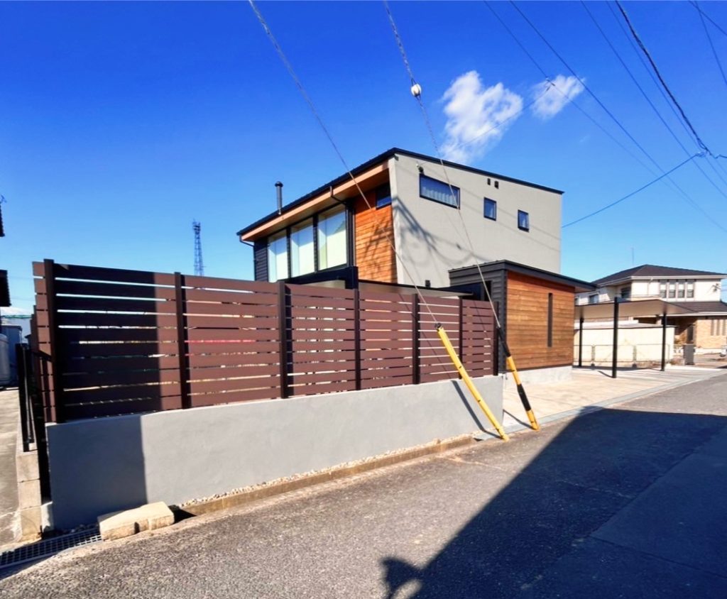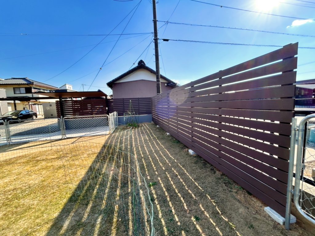 広いお庭はグローベン プラドプラスの木調樹脂の目隠しフェンスも設置してプライベート空間が充実しています。