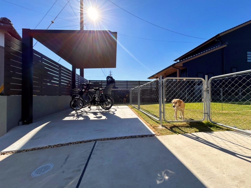 わんちゃんが出て行かないように、また高浜市の用水路にお子様が落ちないように、アメリカンフェンスも設置しました。