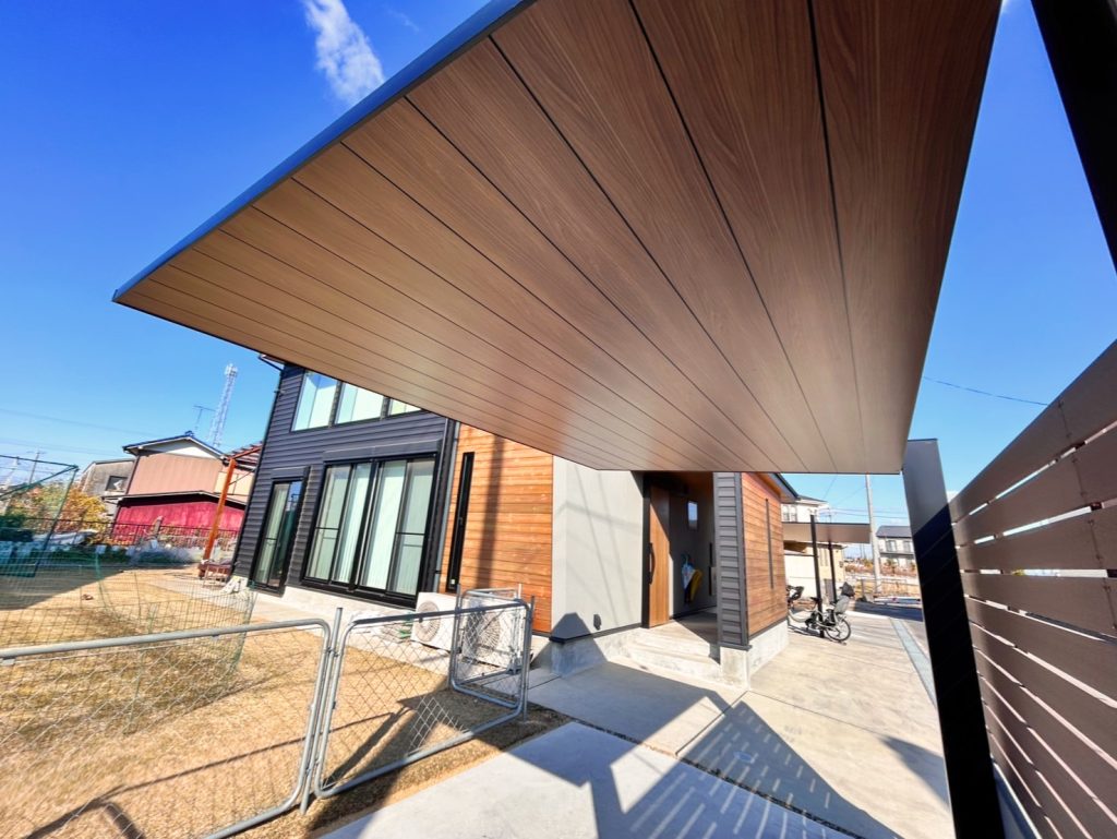 木目調の屋根がかっこいいLIXILのSCという商品をカーポートと自転車置き場サイクルポートに採用してモダンな外構になりました!